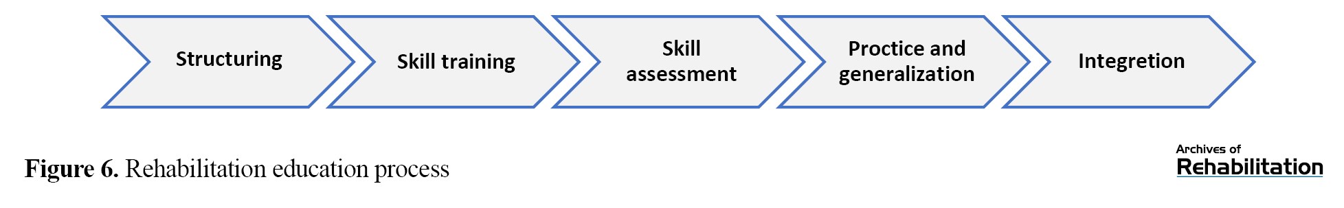 In conclusion, the implementation of proper rehabilitation education in Iran requires attention to the multiple dimensions and determinants of the education program, the specific characteristics of rehabilitation education, the use of correct and appropriate methods and tools for rehabilitation education, attention and focus on the process and products of rehabilitation education, the correct selection of students and their appropriate training, interdisciplinary interactions, the use of effective study fields, and the motivation of learners. Practical recommendations for improving rehabilitation education include: