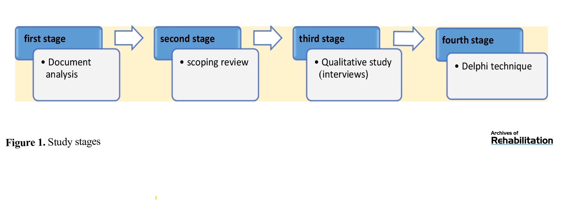 This research was a prospective policy analysis study aimed at policy analysis for policymaking, with the goal of developing policy strategies to enhance the stewardship of rehabilitation services in Iran. In the first stage, documents and upstream policies, laws, and frameworks for the stewardship of rehabilitation services in Iran [10]band globally were analyzed. Additionally, the existing gap between rehabilitation stewardship in Iran and the world was examined. In the second stage, through a scoping review [15], published articles on strategies and challenges related to rehabilitation stewardship were reviewed. The first and second stages, in addition to providing deeper understanding and insight for the researchers on the topic, were used in preparing the interview guide and compiling an initial list of key actors in rehabilitation stewardship in Iran to identify potential interviewees, as well as for stakeholder analysis. In the third stage, using the perspectives and experiences of key informed individuals, stakeholders, and various role-players obtained through semi-structured interviews, the position, role, and relationships of key actors in rehabilitation stewardship in Iran, the process of rehabilitation stewardship in Iran, and the contextual factors influencing rehabilitation stewardship in Iran were examined [14]. In the fourth stage, after synthesizing the results from the previous stages, the researchers developed initial policy options (drafts) and then evaluated them based on four criteria—desirability, feasibility, importance, and appropriateness—using the Turoff policy Delphi technique model [16]. A checklist of policy options was prepared and shared with experts, and their final opinions on the policy options were incorporated.